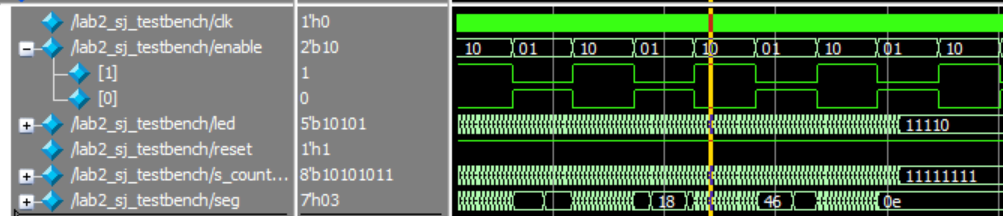 Therefore, the design met all of the intended design objectives, and performed quickly and reliably. The simulations shown below ran in a few seconds, and the hardware displayed all the required LEDs brightly.